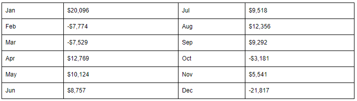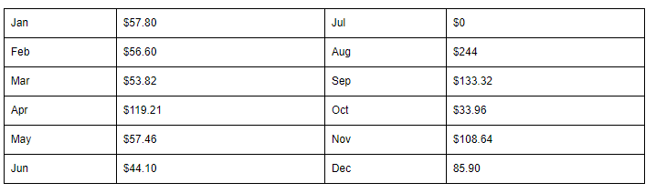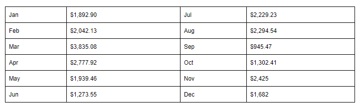 April was increased due to purchasing flight time for my private pilot license