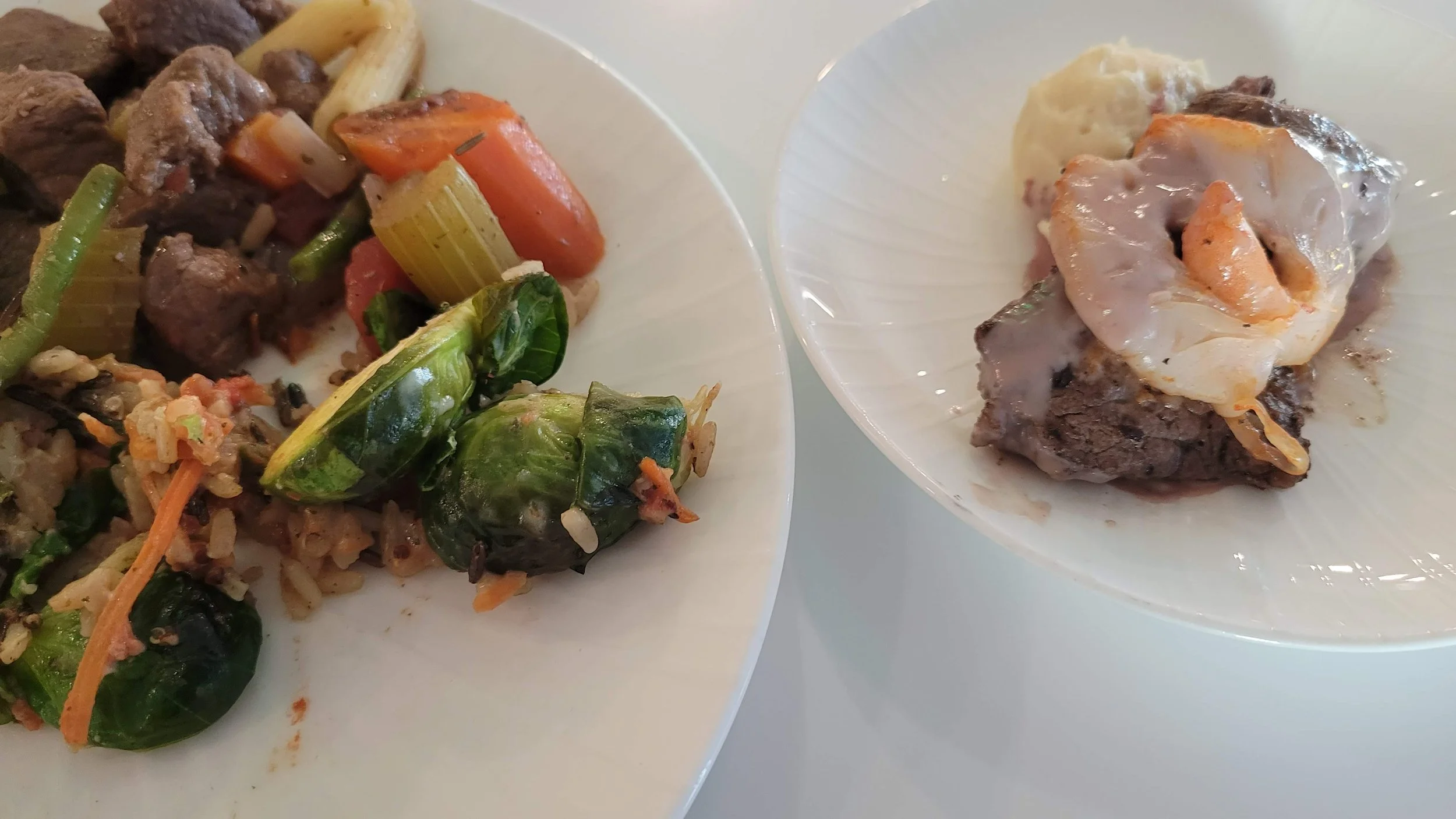 It’s a pretty terrible photo but the steak, shrimp, and veggies were honestly delicious. I’m always impressed with their offerings.