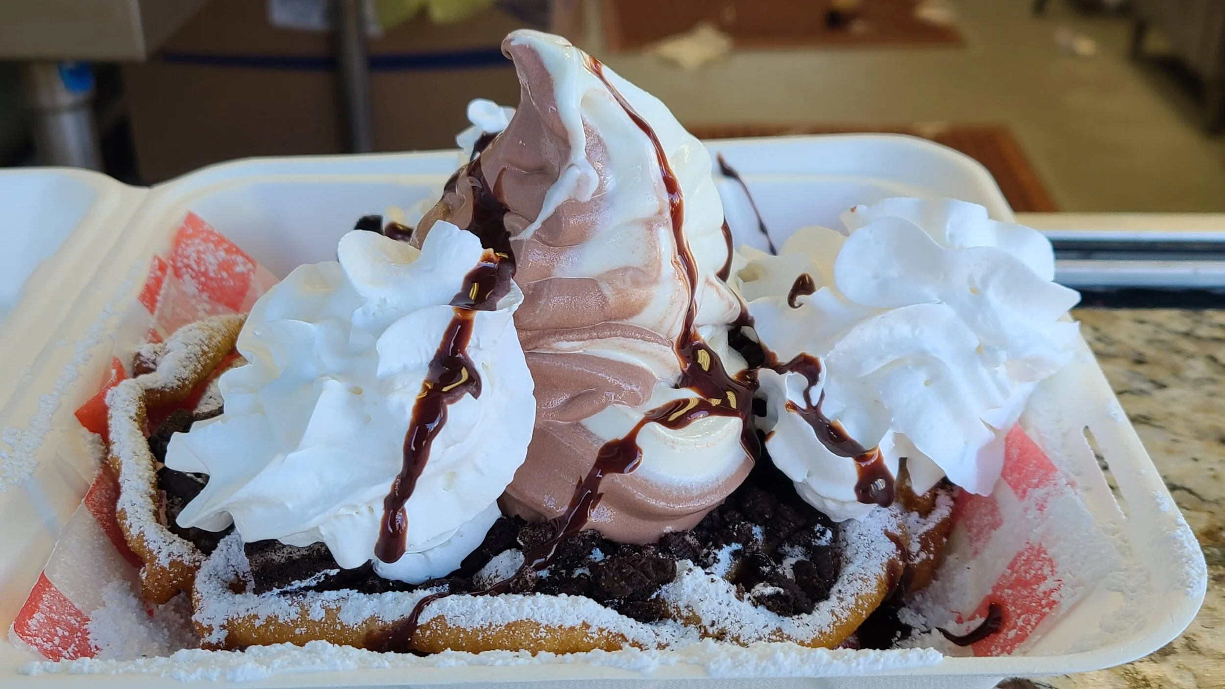 The only problem will be working out enough at the new gym to keep up with these calories. With the pass I’m able to get one “meal” and one “snack” each day. This monster of a funnel cake is considered a snack.
